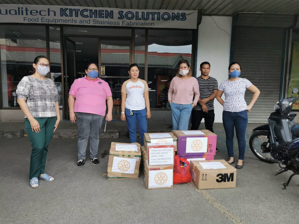 Stephanie Caragos, MNP 2016 working with fellow Rotarians in Cagayan de Oro City, helped coordinate the distribution of essential items such as face shields, masks, gloves and food items to hospitals across the city.